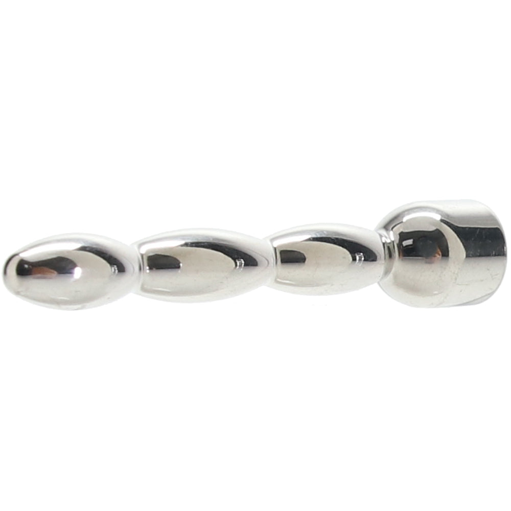 The super-sleek, solid steel Bling Bling Wavy Penis Plug can penetrate about 2 inches; you can use as much or as little of that length as you’re comfortable with. The tip is smooth and rounded, the smallest point of three gradually widening swells. Adding some eye candy to the experience, the base of the Bling Bling is a sparkly blue gem.