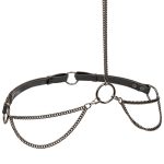 Worn as a body harness, the comfortable, velvet-lined collar buckles around your neck as a hip strap slips down over your waist. The attached chains dangle and dance as you move, drawing all eyes to your shape.